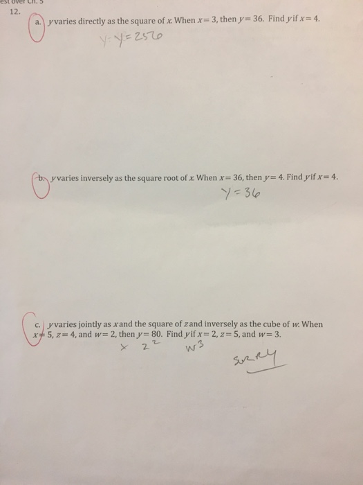 Solved A Y Varies Directly As The Square Of X When X 3 Chegg Com